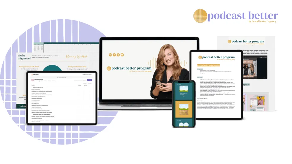 Offering a rich collection of plug-and-play templates and six comprehensive step-by-step modules, the Podcast Better Program is an invaluable resource for creating a weekly podcast that will resonate with your dreamiest clients and help you fill your programs, scale your business, and build an expert brand.