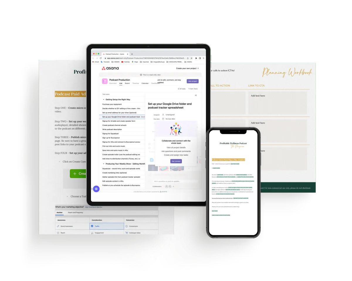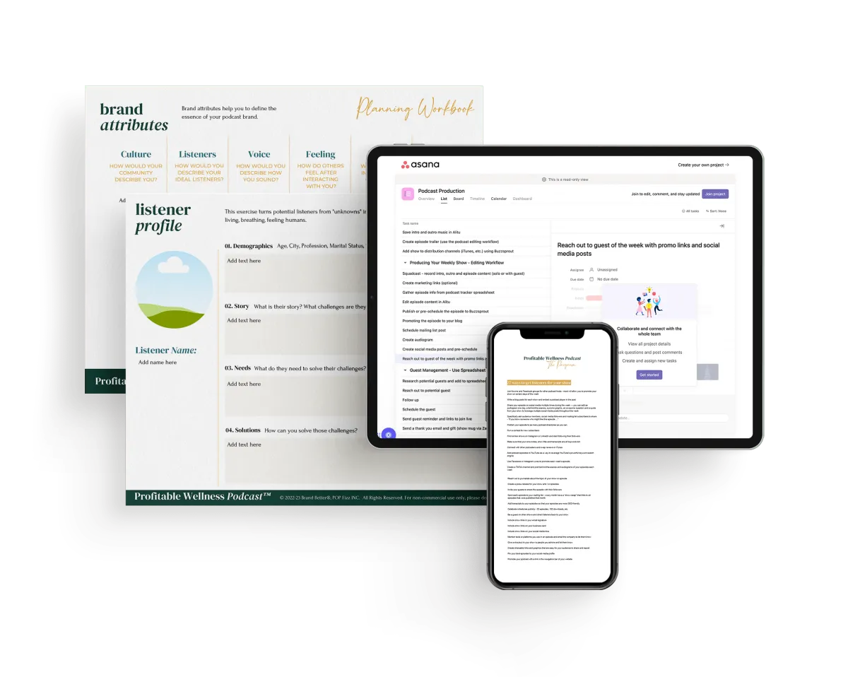 A digital workbook that will guide you through pinpointing your perfect micro-niche, developing your irresistible branding, mapping out your episode segments, and crafting your calls-to-action.